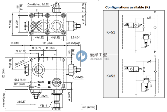 REXROTH OILCONTROL閥VEI16-VU-VSP15020-ST-09系列技術(shù)尺寸